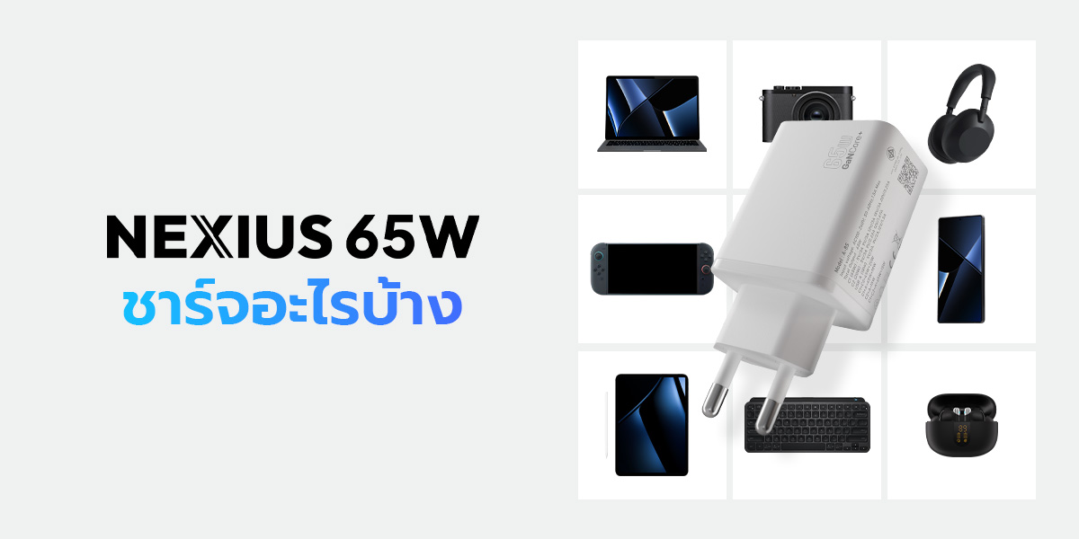 กำลังไฟระดับ 65W สามารถชาร์จได้ครบเกือบทุกอุปกรณ์ในชีวิตประจำวัน เช่น